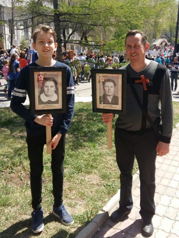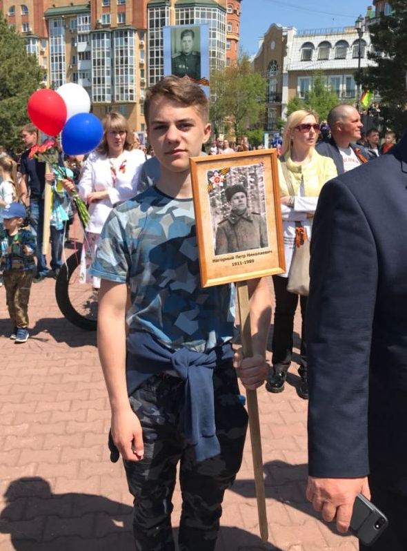 9 мая учащиеся МБОУ Гимназия №7 8 "В" класса прошли в "Бессмертном полку"