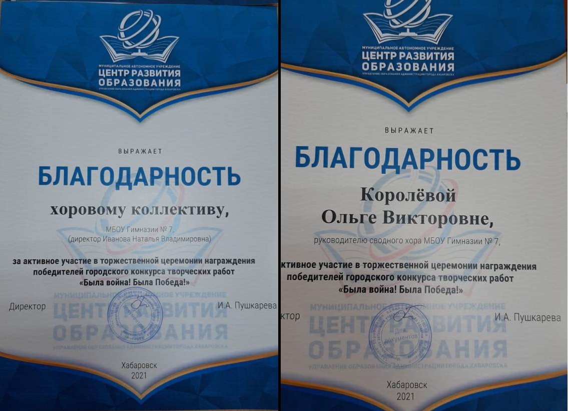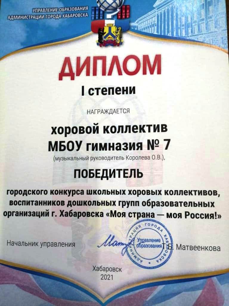 хоровому коллективу, МБОУ гимназии №7 (директор Иванова Наталья